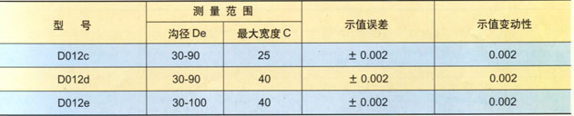 本儀器是比較法機械式測量器。D012C用于測量向心球軸承外圈溝道的直徑和賀度、溝位置和溝側擺等的變動量;D012d、D012e用于測量向心球軸承外圈溝道直徑和賀度的變動量。